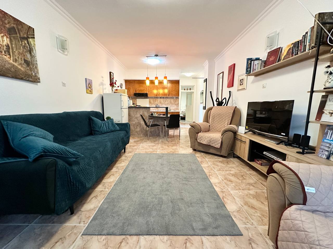Daire, modern malzemeler kullanılarak yapılmış güzel bir iç dekorasyona sahiptir. Tamamen mobilyalı olarak satılmakta olup gerekli tüm ev aletlerini içermektedir. Ayrıca klima, kablolu TV ve internet erişimi de mevcuttur.